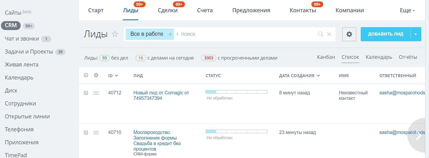 Моспароходство: страница CRM